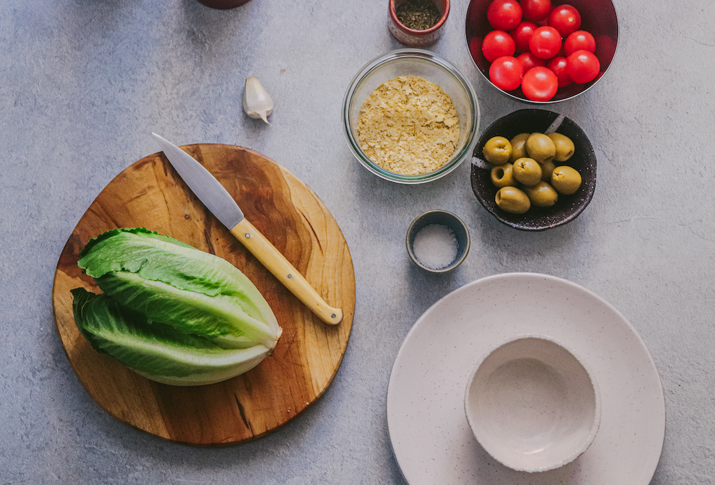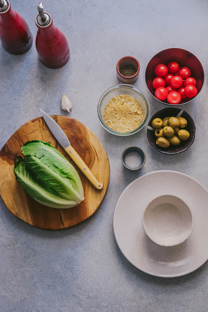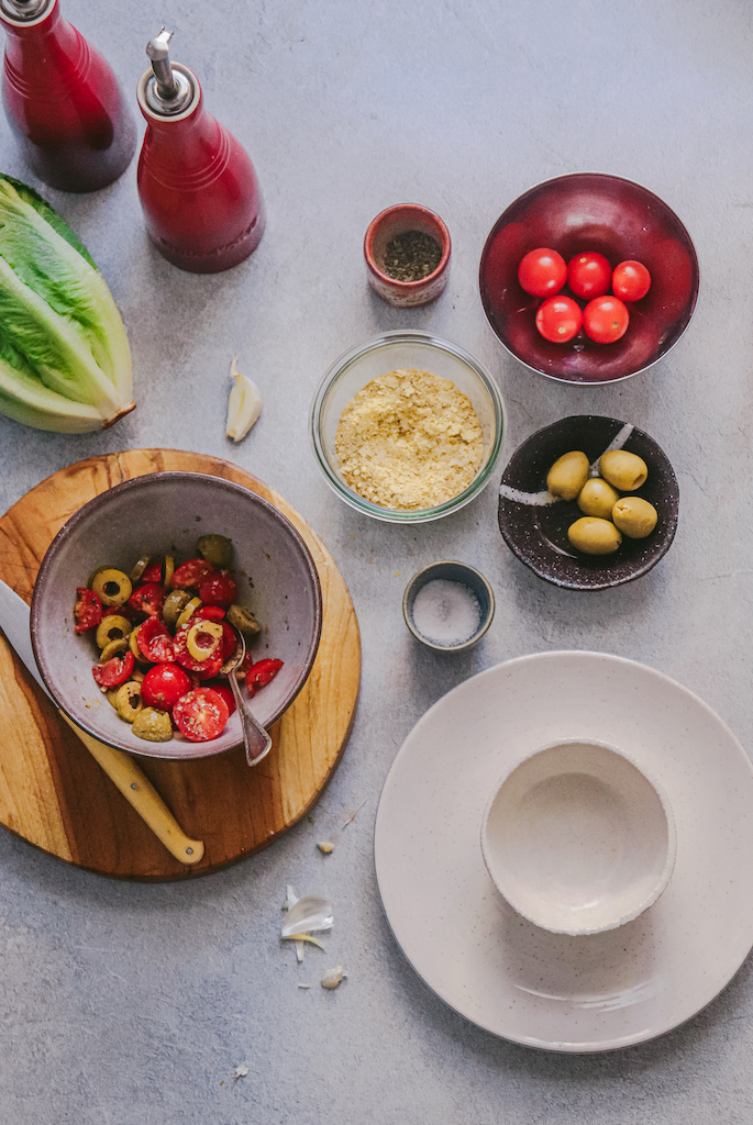 - Ajoutez l’origan, le sel et la levure nutritionnelle. Ajoutez ensuite l’huile d’olive vierge extra et le vinaigre.