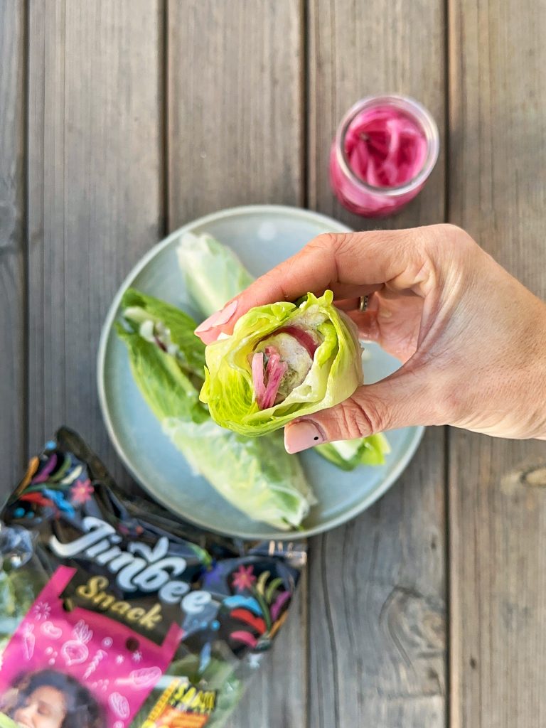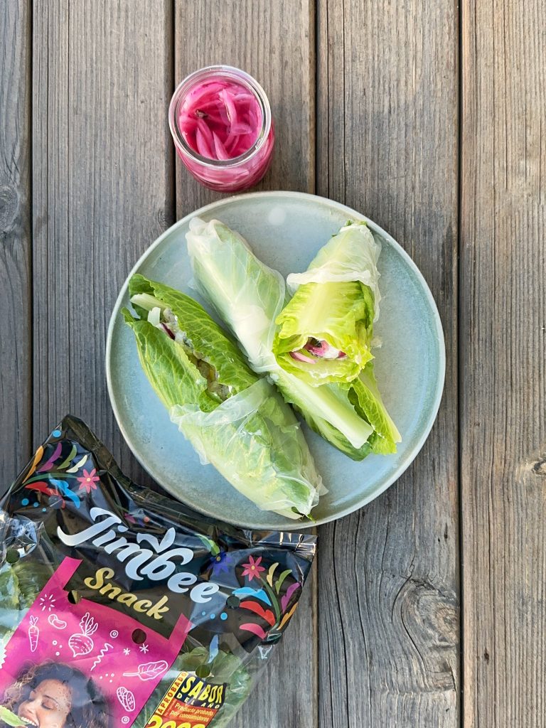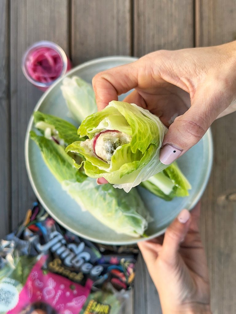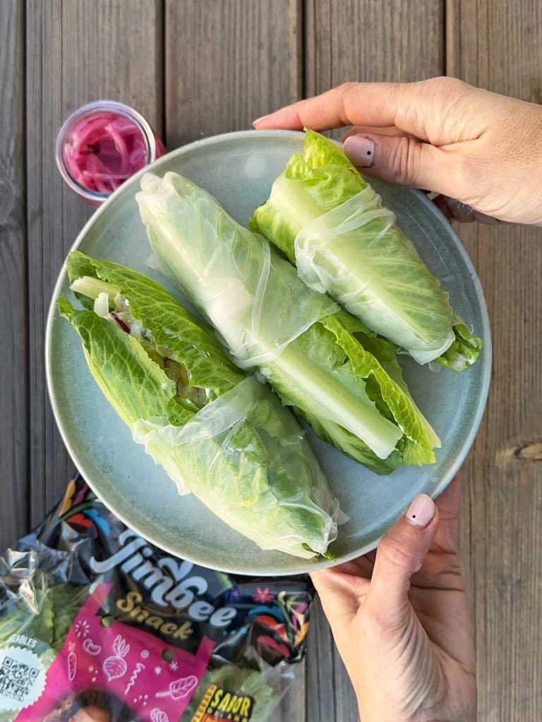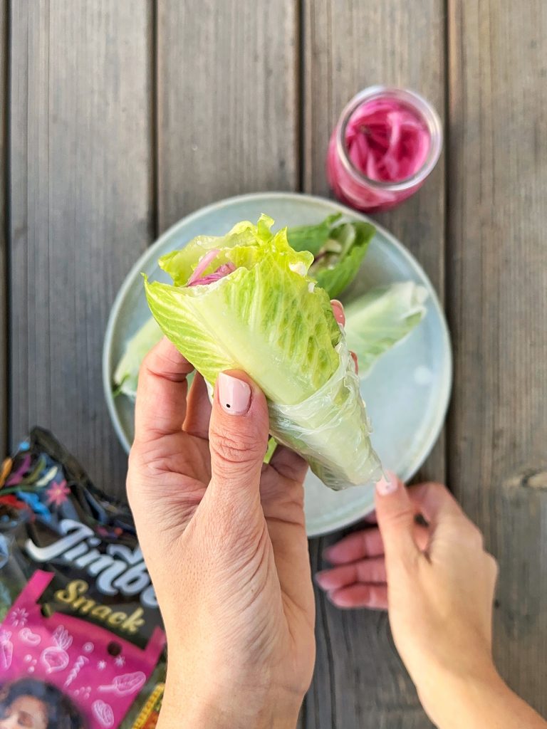• Montamos el wrap con las hojas de lechuga jimbee snack y el relleno.